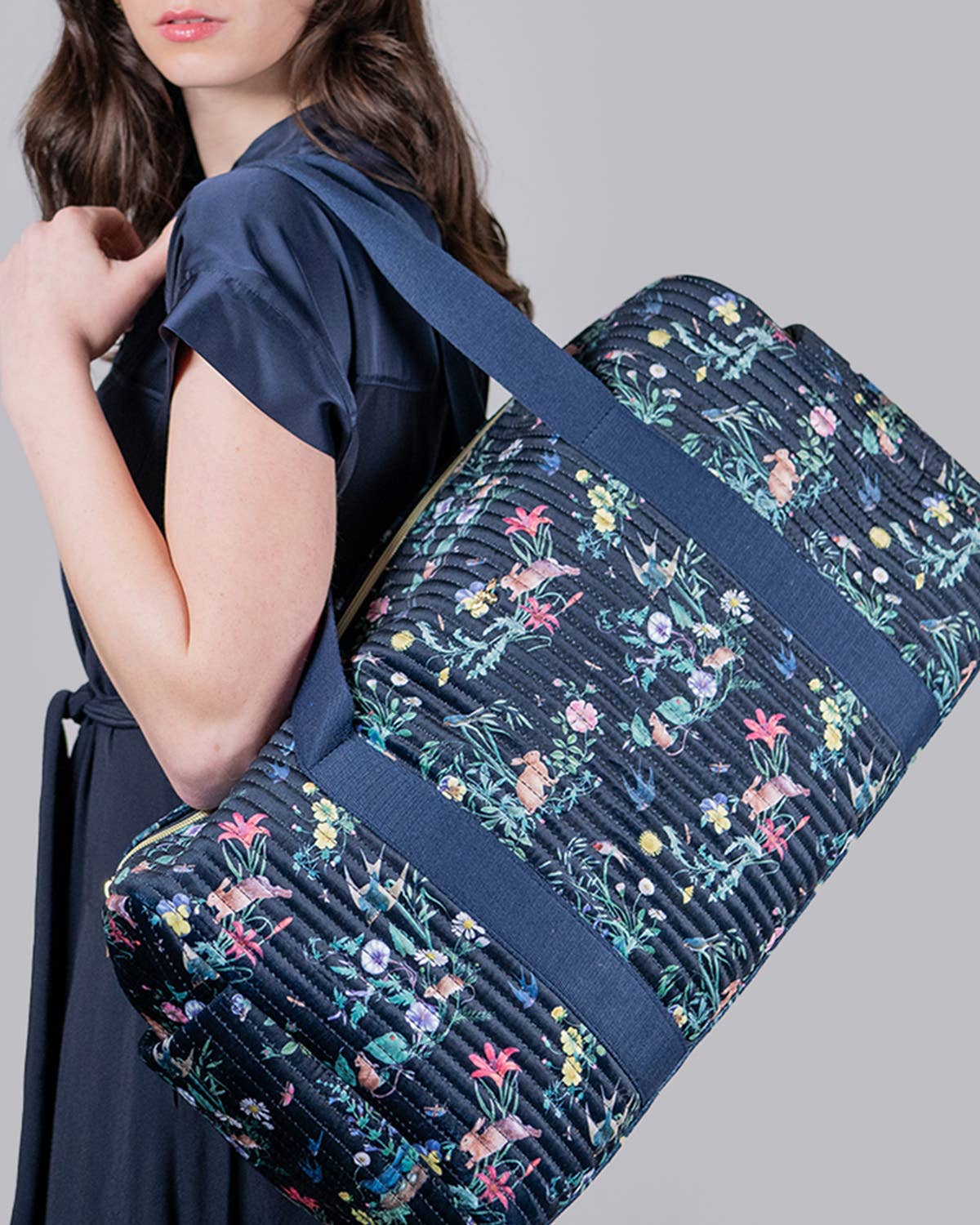 Get ready to elevate your weekend travel game with the Running Bunny Weekend Bag, a stunning accessory that combines functionality with whimsical style. The exclusive Running Bunny wildlife print features an enchanting array of playful critters set against a rich backdrop, while the roomy central compartment is designed to hold all your getaway essentials, from cozy sweaters to your favorite books. Perfectly sized for quick weekend getaways or daily commutes, the Running Bunny Weekender is the ideal travel companion for the modern jet-setter or busy professional. This weekender also offers a range of coordinating accessories, including cosmetic bags and a travel jewelry box, all adorned in the same eye-catching print. This creates a cohesive and stylish travel set that’s sure to have you hopping with joy every time you hit the road. Outer: 100% Polyester; Lining: 100% Polyester Approx. 50 (L) x 26.5 (H) x 21 (D) cm Wipe clean with a damp cloth