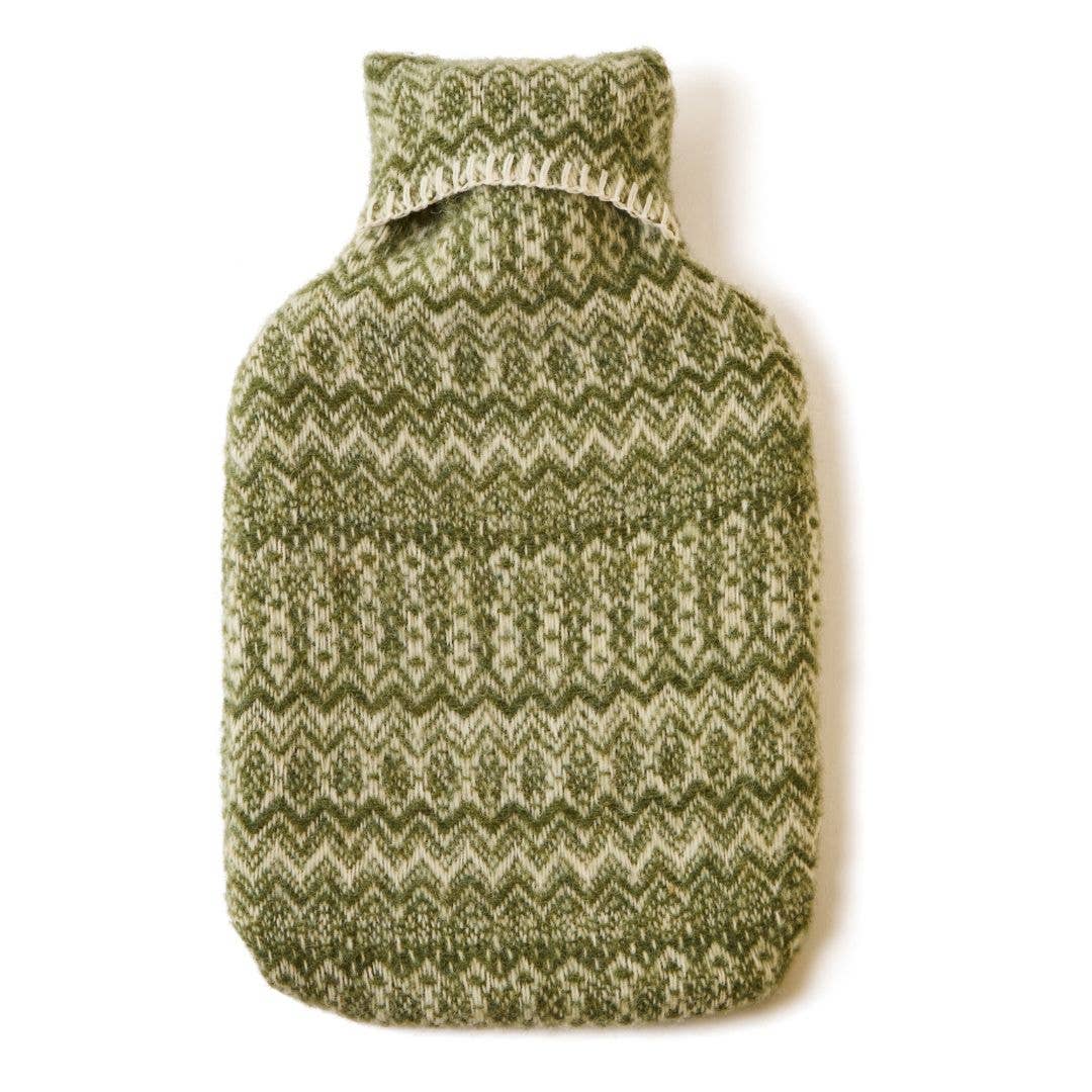 A cosy hot water bottle with a pure new wool cover in a timeless Fair Isle weave. Ease into warmth with our Hot Water Bottle featuring a beautifully woven cover made from pure new wool. Crafted in the UK, this elegant yet practical accessory brings natural insulation and tactile comfort to your relaxation routine. Perfect for chilly nights, soothing aches, or simply adding a touch of heritage charm to your home. It's a must have for colder seasons - or a thoughtful gift for someone in need of extra comfort. Size: One size, bottle included.