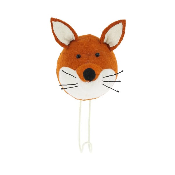 This wall Fox hook by Fiona Walker England is a quirky take on home decoration. Ideal for children’s bedrooms, playrooms or perhaps just a talking point in your living space, this animal hook is certainly going to make a statement! This ethically produced home decoration is made from. Outer – 100% felted wool and off-white metal hook, inner – 100% polyfill fibre. Each item is produced by hand which gives each animal head its own unique character; we think this is really rather charming! Product Details: Measurements: 15 x 15 cm all approx Material: outer 100% felt organic lamb’s wool, inner 100%