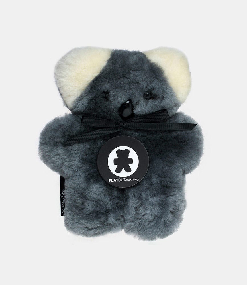 FLATOUT bear A miniature version of the classic FLATOUTbear: soft, cuddly & flat, the FLATOUTbearbaby is made of 100% Australian sheepskin shaped like a cute and tiny teddy bear. It’s handbag size, it’s pocket size, it’s pint size, and it’s oh so cute! 18cm tall x 16cm wide x 4cm flat Hand made from 100% Australian sheepskin can come in the larger size  made to order pre paid 28cm x 24cm (this may vary slightly as each bear is hand cut) 5cm flat Easy care –cold spot clean and dry in shade (please click here for detailed care instructions) Baby safe – the FLATOUTbears reach Australian, NZ, USA, EU & UK children’s toy safety requirements (CE tested) Soft, cuddly and flat, the FLATOUTbear is made of 100% pure Australian sheepskin shaped like a teddy bear. They are just gorgeous. They’re natural, plush and luxurious – perfect for babies, kids, grannies… What can we say, everyone loves FLATOUTbears. It is no wonder the FLATOUTbear has a star-studded fan base including Princess Mary of Denmark, Brooke Shields and Hugh Jackman. Sarah Jessica Parker termed the FLATOUTbear “charming and adorable”, Tom Cruise had it on his baby wish-list, Jennifer Garner “loves it”. The FLATOUTbear is now seen around the world. We suggest that you follow the SIDS guidelines as well as using a common sense approach when giving children the FLATOUTbear. Like with anything, we suggest parental supervision.