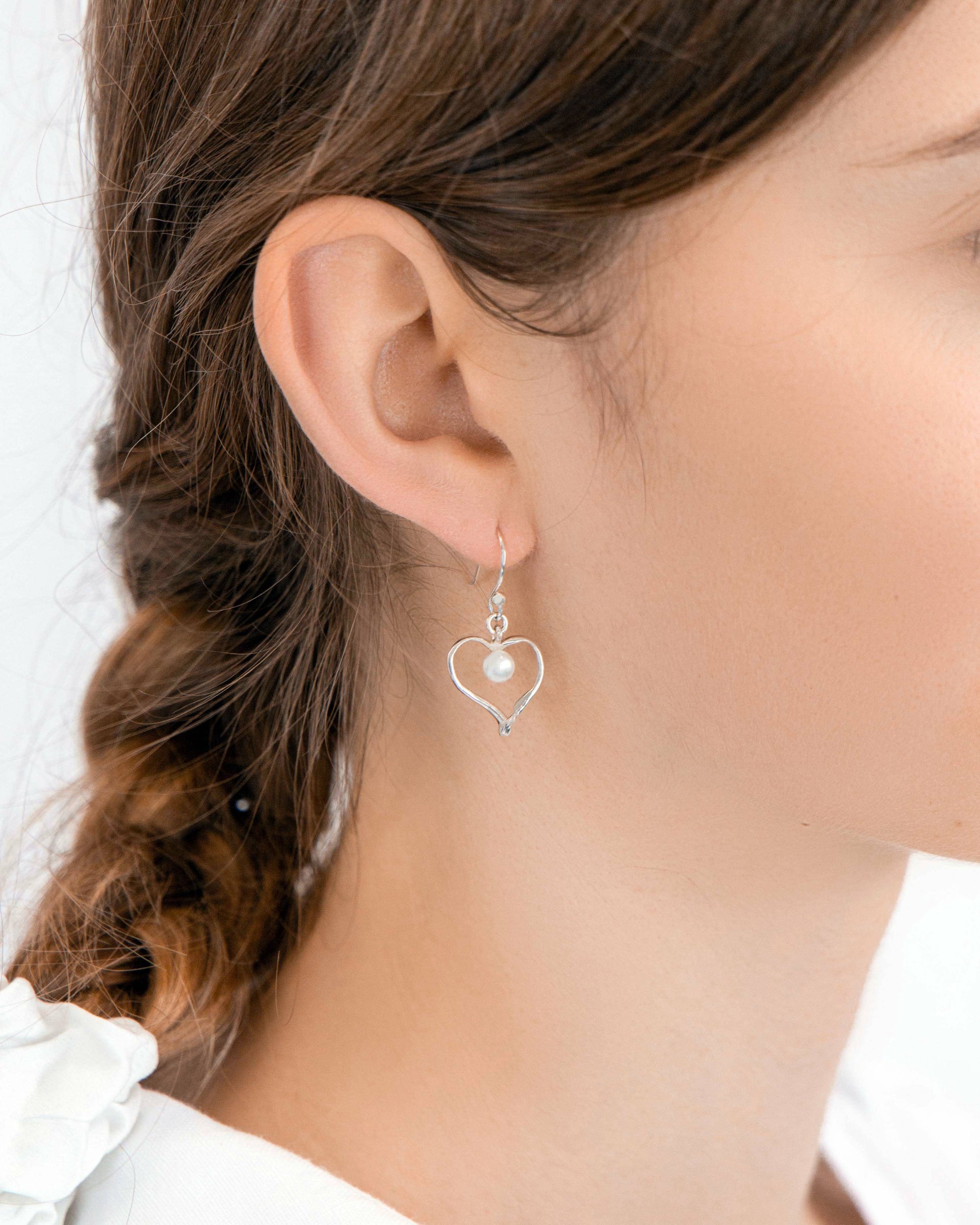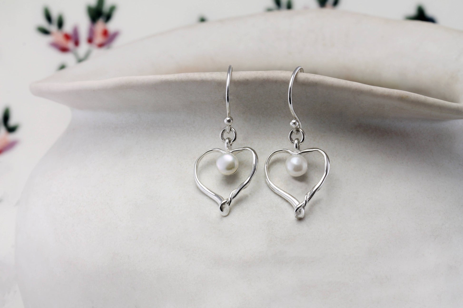 Handmade Sterling Silver Freshwater Pearl Heart Earrings