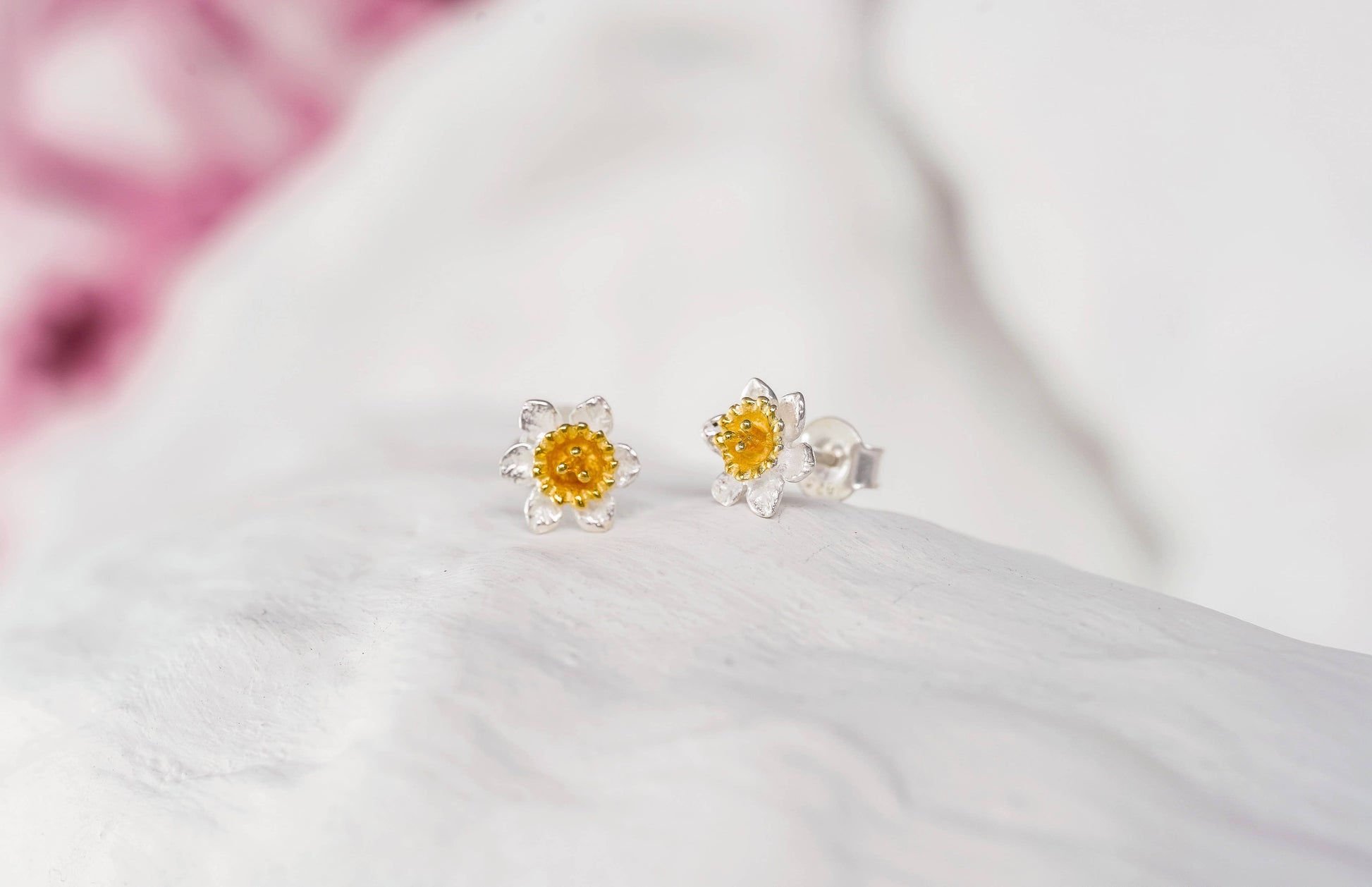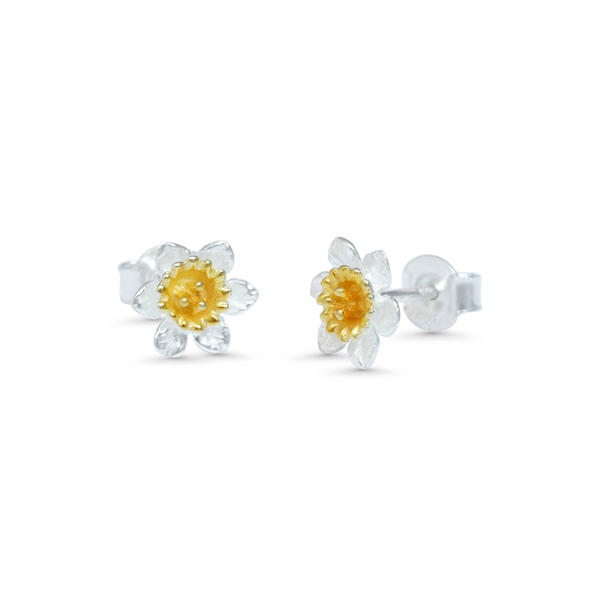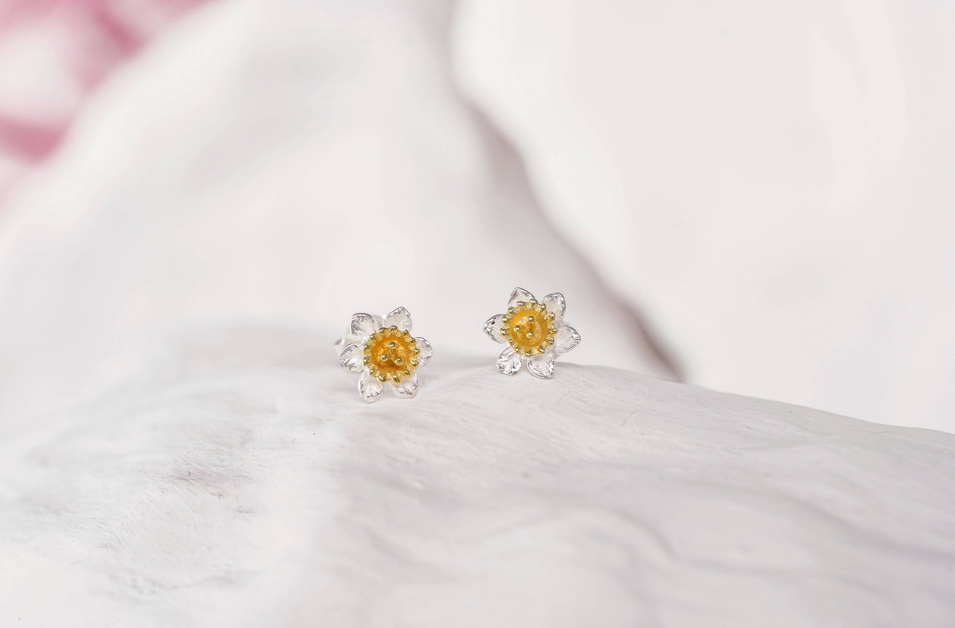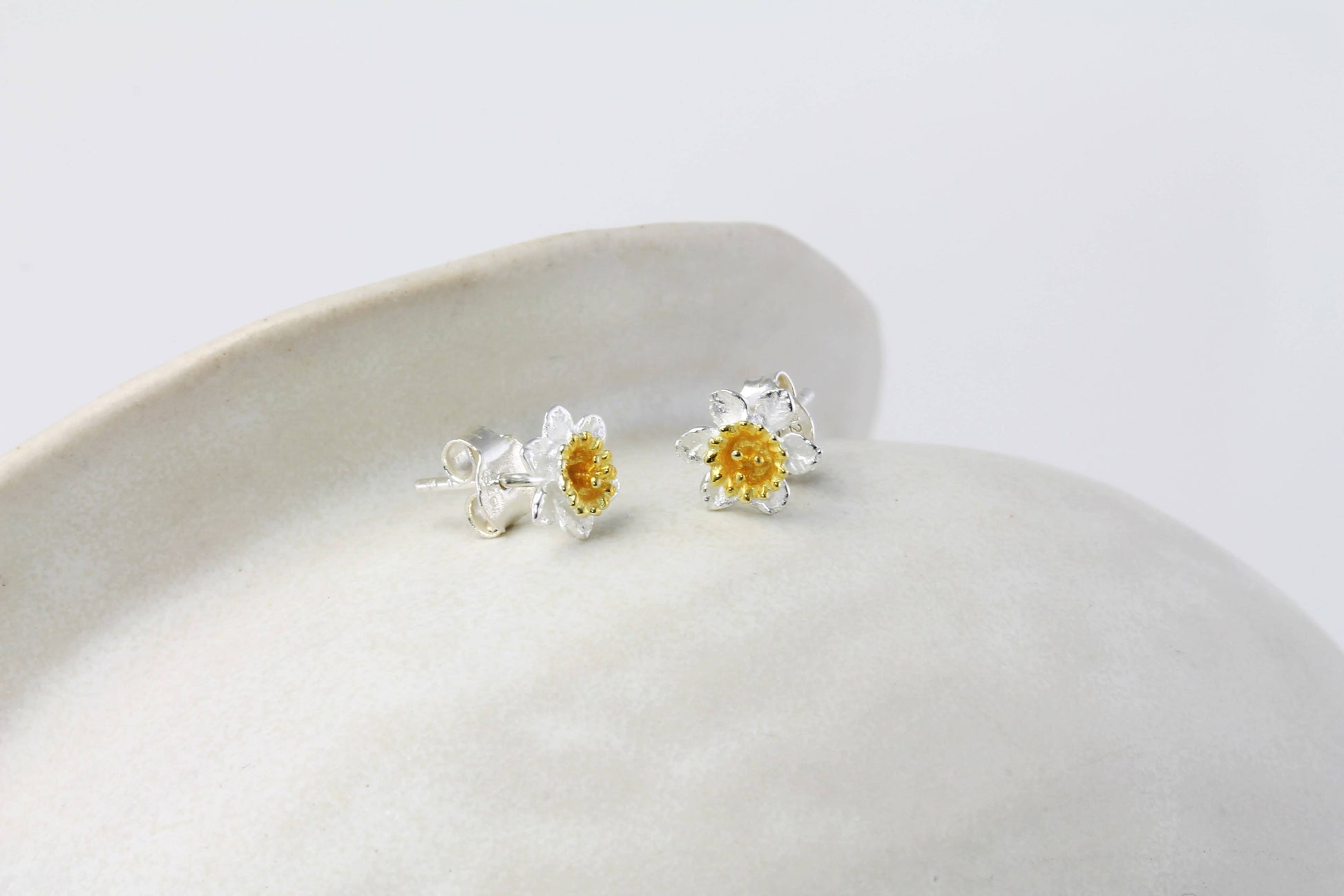 Handmade Sterling Silver Mixed Metal Daffodil Stud Earring