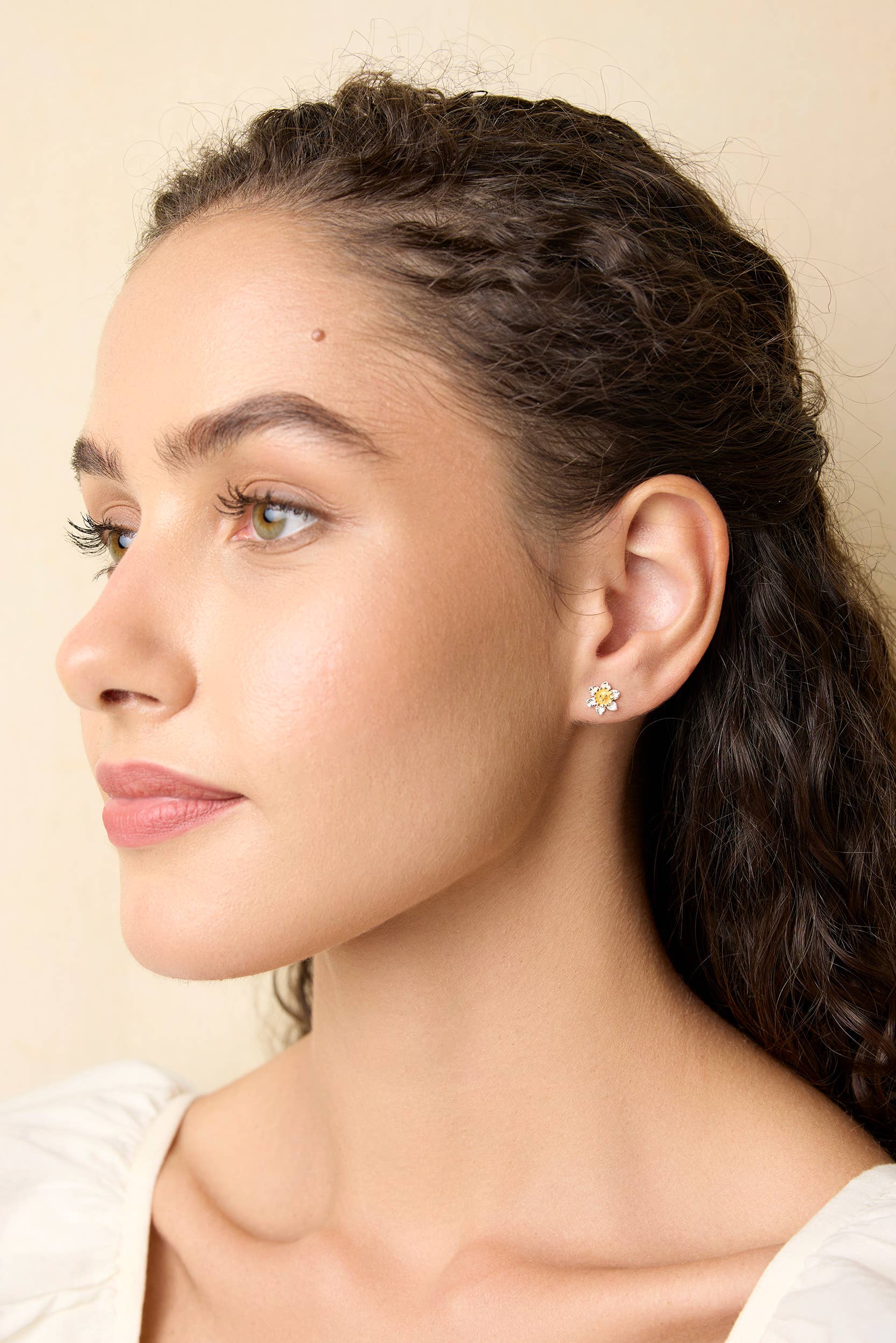 These detailed Sterling Silver daffodil studs are finished with 18KT Gold plating. The studs measure 9mm wide. They come with butterfly backs. Materials: Sterling Silver, 18KT Gold Flash Plating
