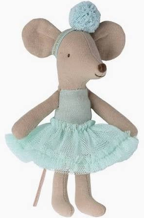 A little sister mouse dressed up like a graceful ballerina. She wears a beautiful off-white coloured tutu and a beautiful headband - ready for hours of dance.
