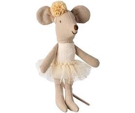 A little sister mouse dressed up like a graceful ballerina. She wears a beautiful off-white coloured tutu and a beautiful headband - ready for hours of dance.