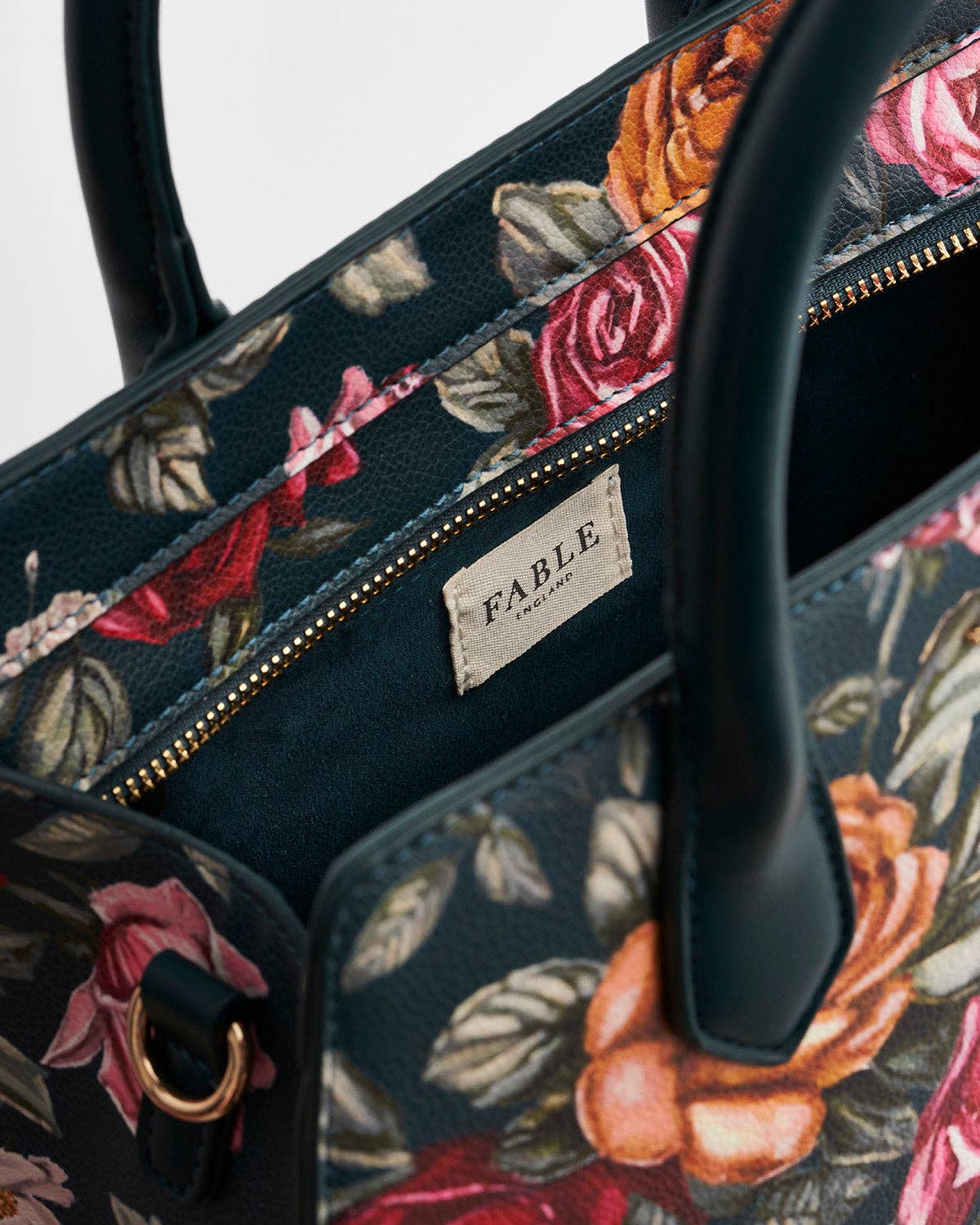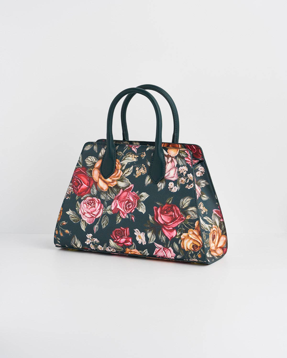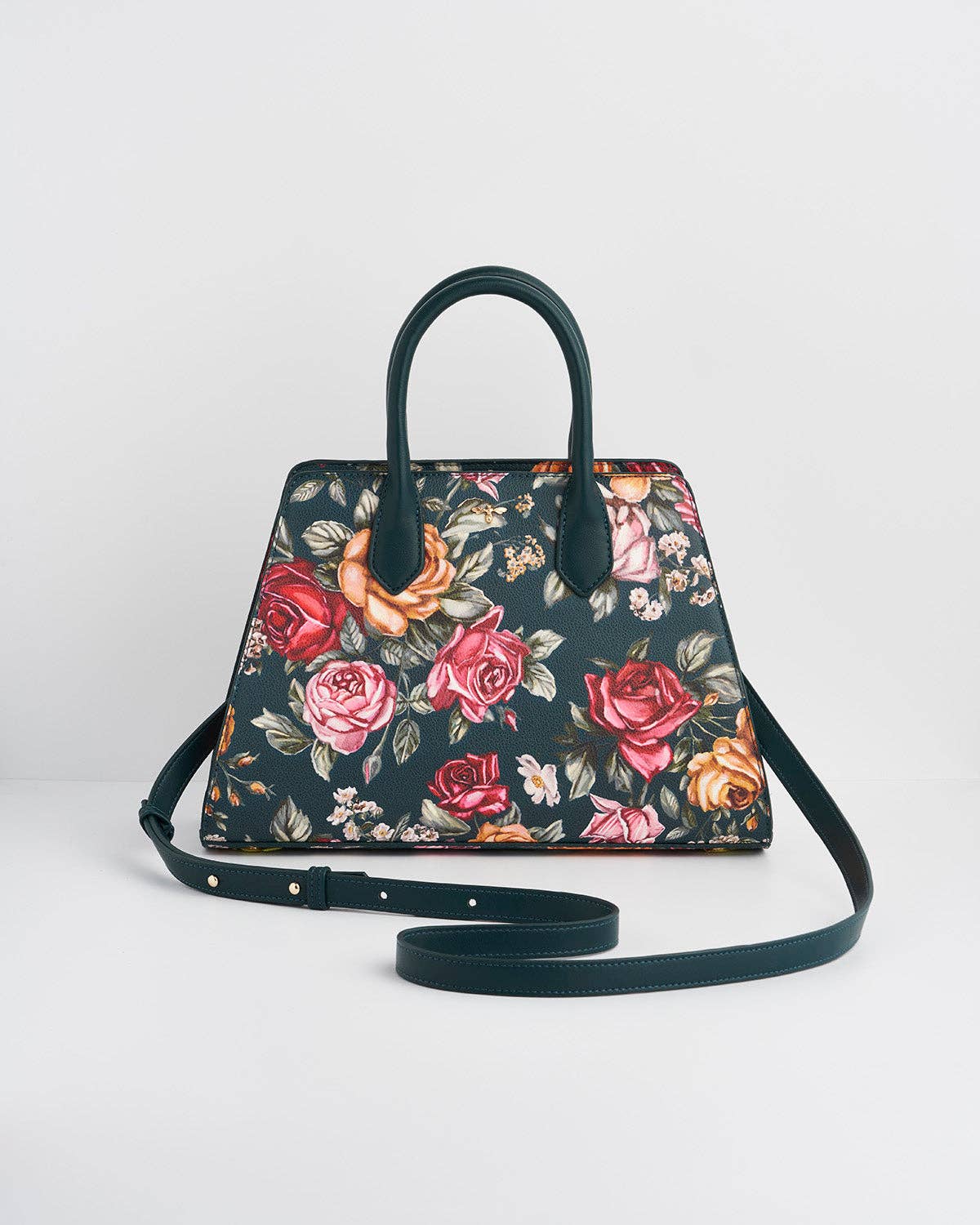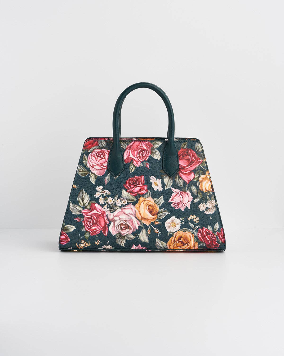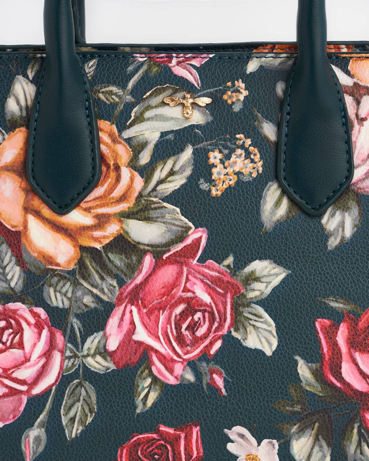 Rooted in quiet strength and blooming with beauty, the Rose Teal Structured Tote brings floral elegance to everyday life. Inspired by a rose that stands tall through storm and sun alike, this striking bag is a celebration of resilience wrapped in romantic charm. With its rich teal backdrop and bold heritage-style rose print, this tote makes a statement while staying timeless. It's perfect for those who love to blend practicality with poetic detail, whether you're heading to work, brunch, or a weekend getaway. Key features: * Material: Outer 100% Polyurethane; Lining 100% Polyester * Size: Approx. 34cm (L) x 21cm (H) x 12cm (D) * Strap: Adjustable and detachable shoulder strap * Interior: Zipped internal pocket * Care: Wipe clean with a damp cloth