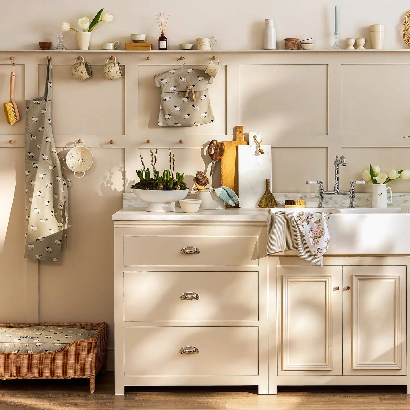 𝗗𝗲𝘀𝗰𝗿𝗶𝗽𝘁𝗶𝗼𝗻 This practical cotton peg bag features an integrated wooden hanger for convenient storage and use, featuring lovely Jacob and Suffolk Sheep on a grey background. • 100% cotton • Integrated wooden coat hanger • 30cm x 30cm • Holds approx 40 standard sized pegs • Hand wash only • Part of the Sheep Collection • All products are made from rolls of fabric with a pattern repeat design. This means the design featured on each item will vary. 𝗖𝗮𝗿𝗲 𝗚𝘂𝗶𝗱𝗲 • 100% Cotton. • Hand wash only. • Do not tumble dry.