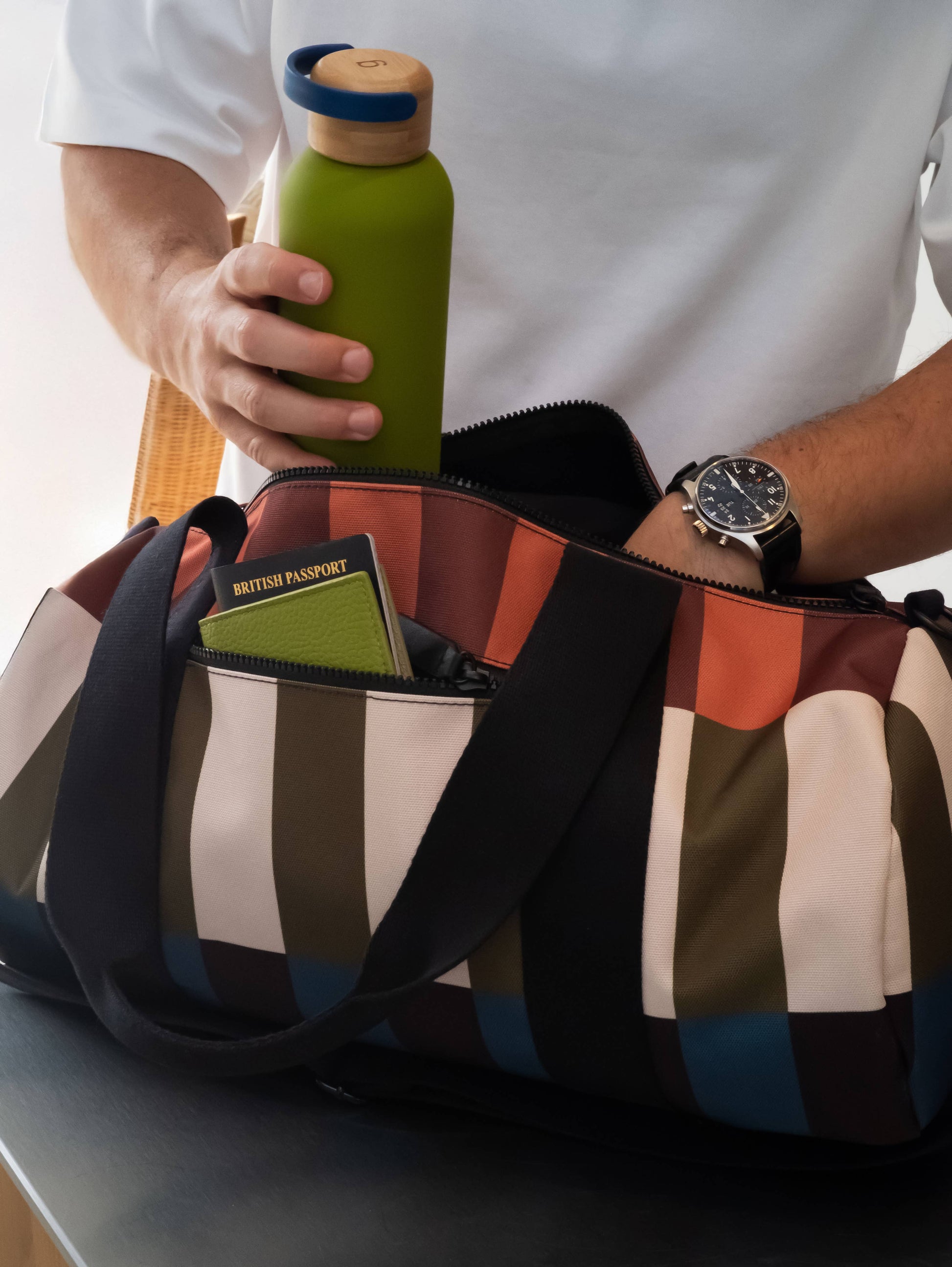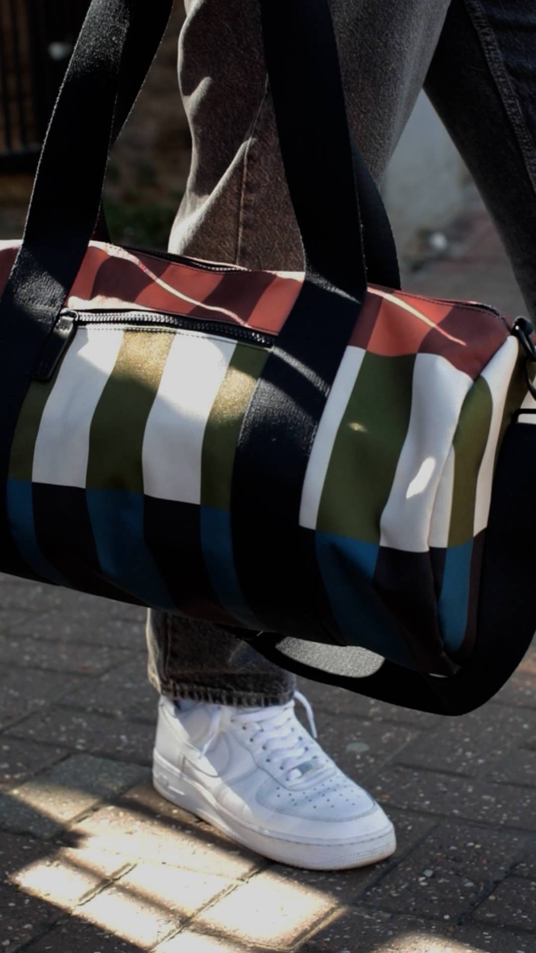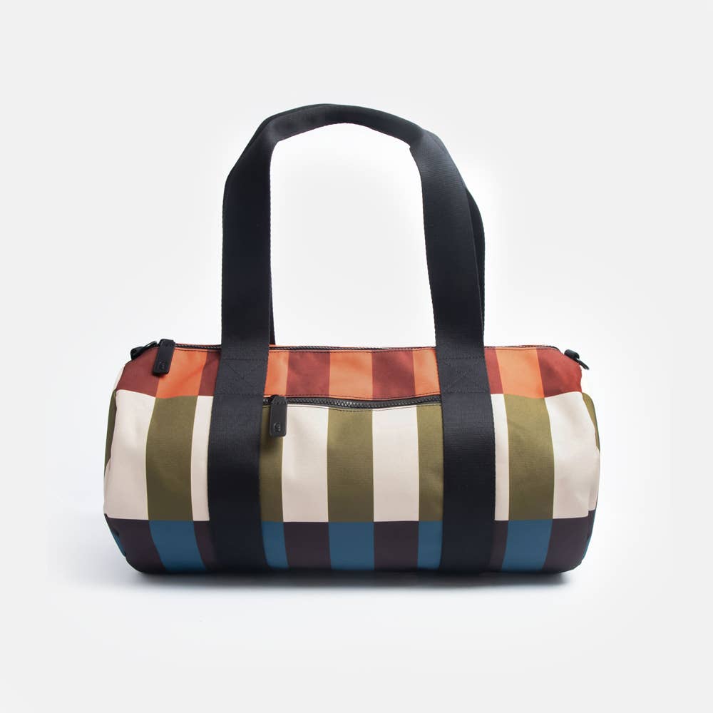 This bold, stand out, multi stripe canvas barrel gym bag is great for all your everyday adventures. It features a top handle, adjustable shoulder strap and easy access outside fully functional zipped pocket to keep all your essentials together in one compartment. Material - 100% Polyester 20l volume