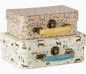 Maileg SUITCASE W. FABRIC - 2 PCS. This is a 2 piece set. The suitcases are covered with beautiful printed fabrics.