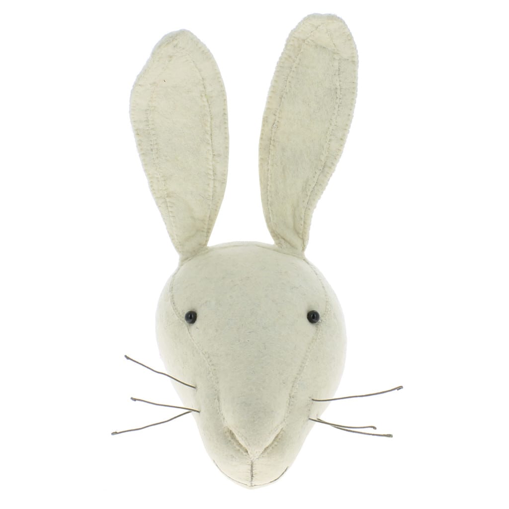White Rabbit Felt Animal Head Wall Mounted Due in Mid Feb 2018- pre order waiting list Appeals to both adults and children Charming, fun and characterful Ethically handmade and crafted Felt and wool Outer - 100% felted wool, inner - 100% polyfil fibre Easy to hang with a single hook on the back supported by a bamboo cane inside Dimensions: 30 x 25 x 40cm all approx. See our selection of Fiona Walker animal heads Fiona Walker England do not supply their heads boxed but it will be securely packed As this item is handmade it may vary slightly from the picture Guaranteed to raise a smile is this White Rabbit Felt Animal Head from Fiona Walker England. A beautiful Wall Mounted animal head, it will be admired by adults and children alike. This quirky, soft plush animal head is an impressive decorative piece and will make a fun and modern statement on a wall.