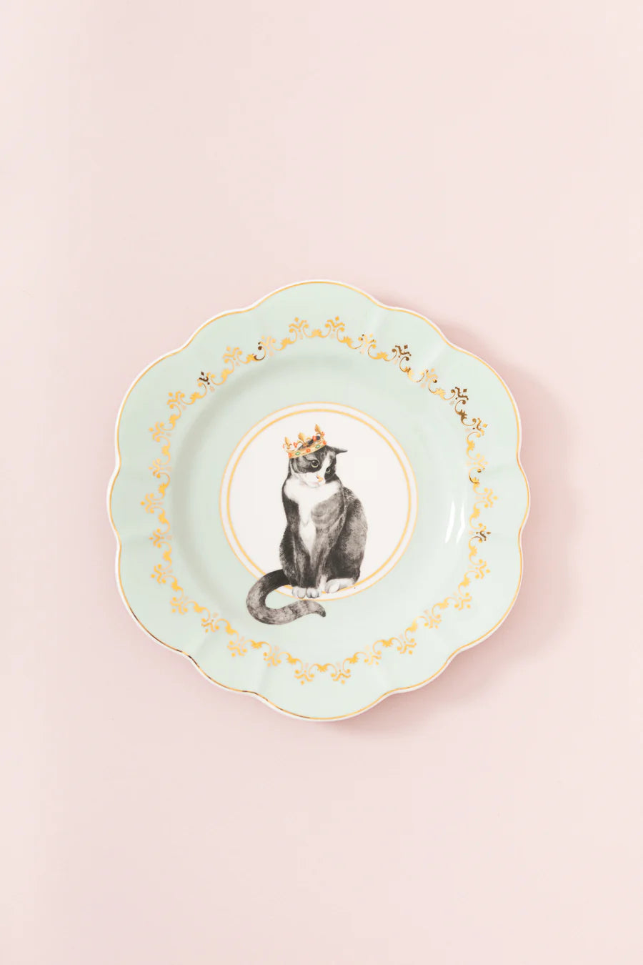 Add a vintage charm to your table with this stunning flower-shaped sandwich plate from the"Best of British” collection, featuring a gorgeous illustration of an adorable kitty on a pastel green background finished with beautiful intricate gilt gold details, a great addition to any dinner party.