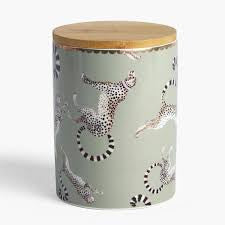 Yvonne Ellen Cheetah Medium Storage Jar china kitchen storage jar featuring a striped design and a Yvonne Ellen Cheetah illustration., The bamboo lid fits neatly on the canister, ...