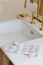 Add some charm to your kitchen with this harlequin reversible oven glove! They're thickly quilted to protect your hands in style with designs on both sides. Match with other kitchen accessories for a stylish finished look. Matching apron, tea towels and double oven glove available!